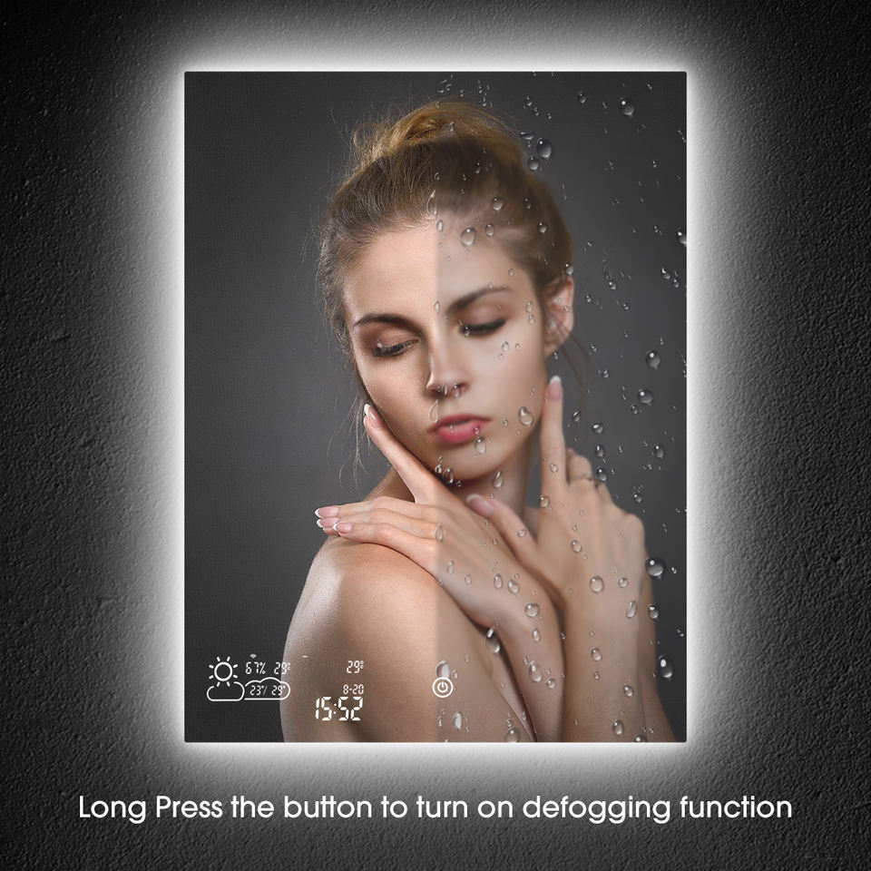 3. Heating or defogging function. The surface will be warmed up in minutes. It'll give you a mist-free bathroom mirror, never worry about the mist or water drops to blur your mirror surface.