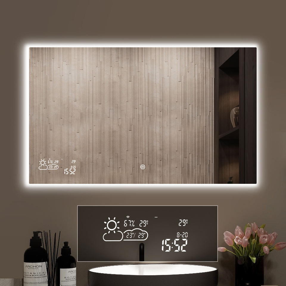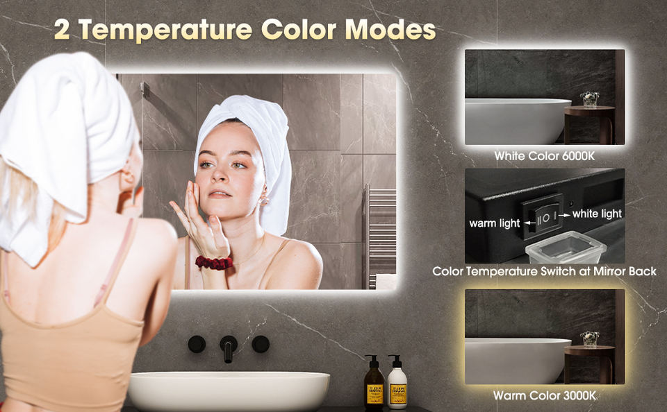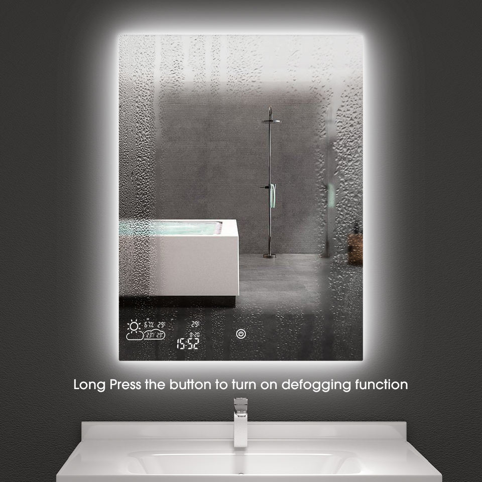 3. Heating or defogging function. The surface will be warmed up in minutes. It'll give you a mist-free bathroom mirror, never worry about the mist or water drops to blur your mirror surface.